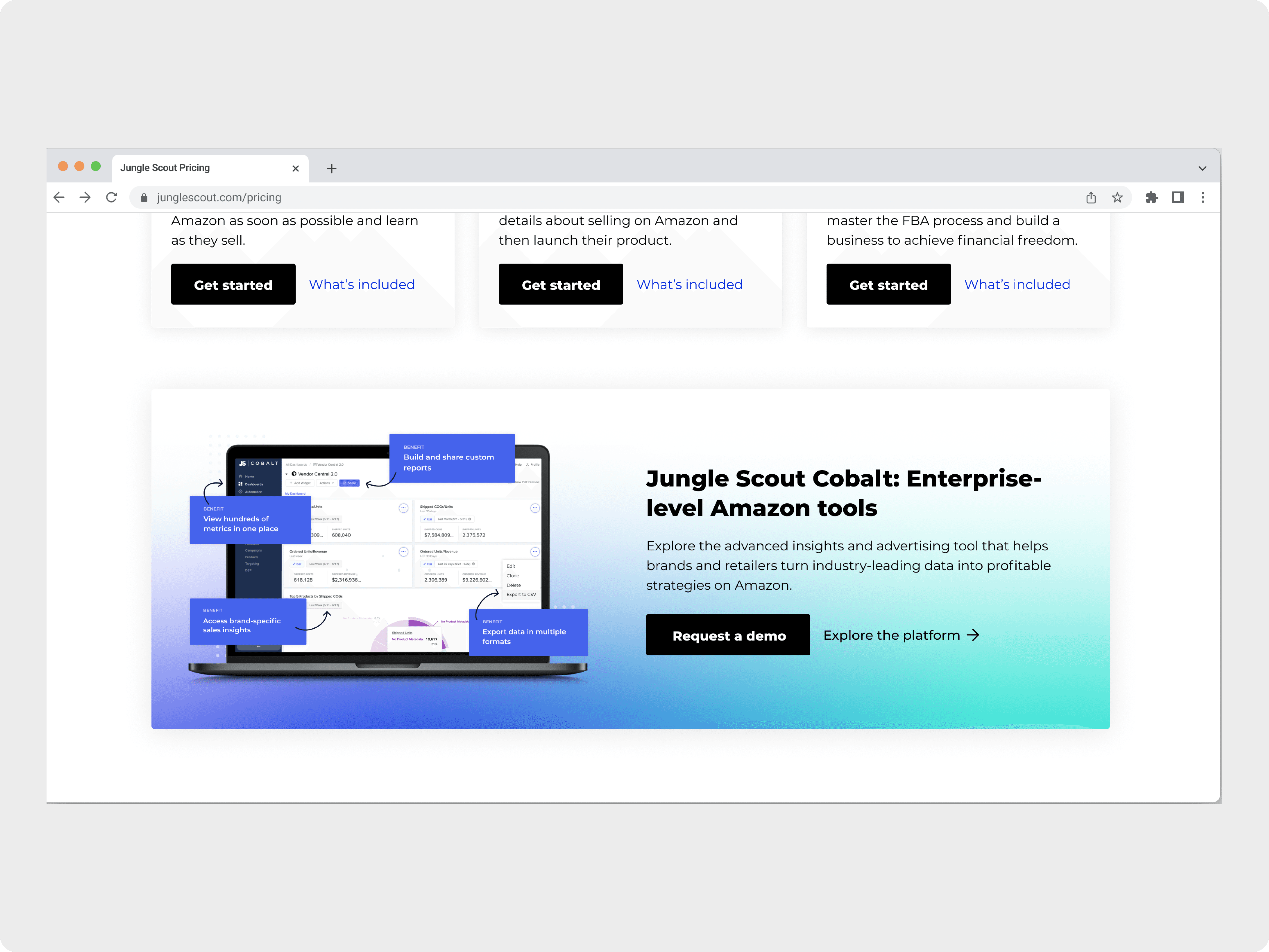 Redesign of Jungle Scout’s pricing page to clarify plan value, improve mobile usability, and increase conversions for SMB and enterprise users.